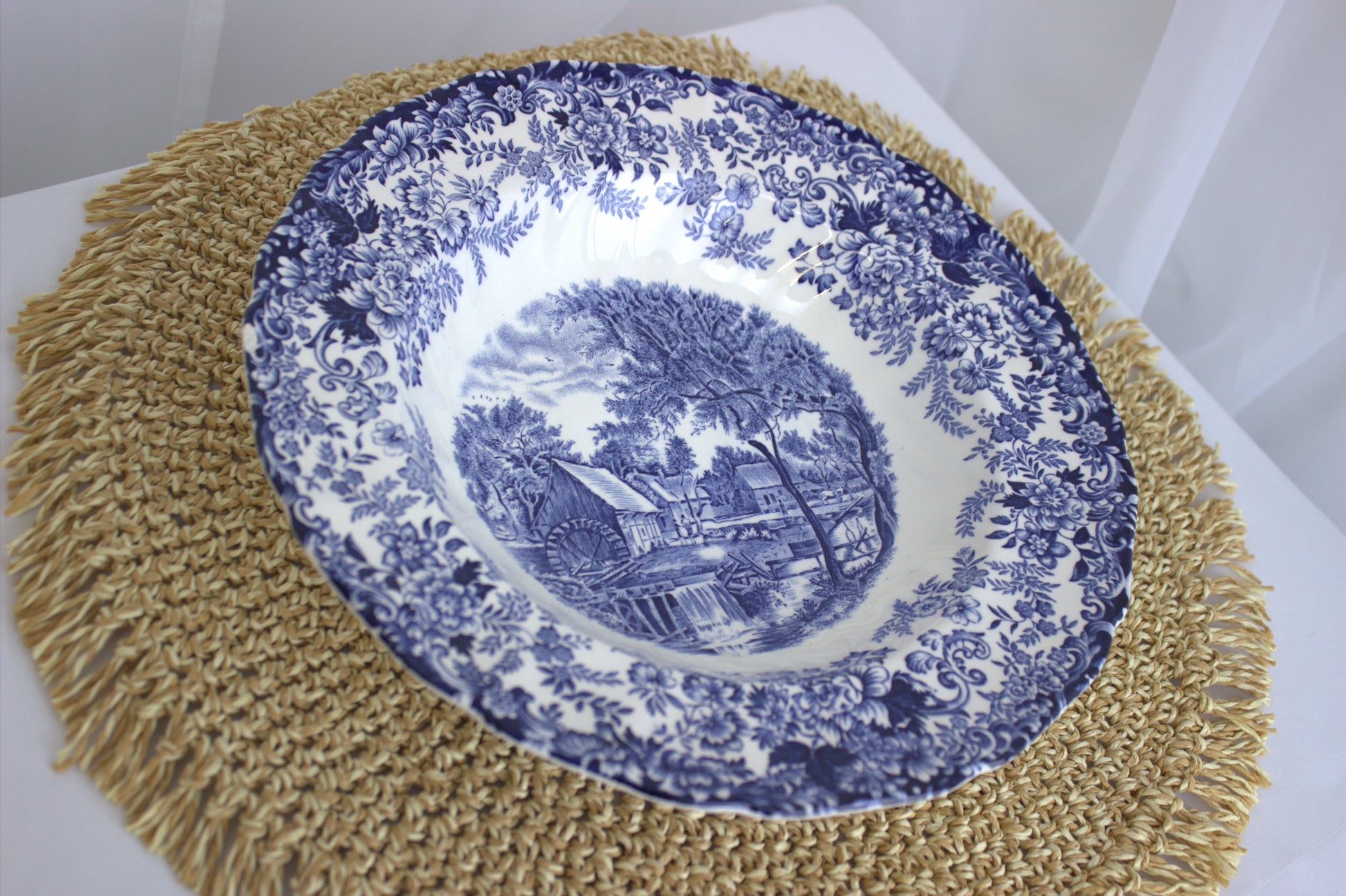 Elevate your dining experience with these gorgeous Mill Stream Soup Bowls! Featuring a stunning blue and white classic print, these bowls are truly a sight to behold. The intricate detailing of a charming water mill and stream scene adds a touch of elegance to your table, making every meal feel special. At 10 inches wide, they're perfect for soup, Irish stew, cereal, or whatever comfort food you're craving.