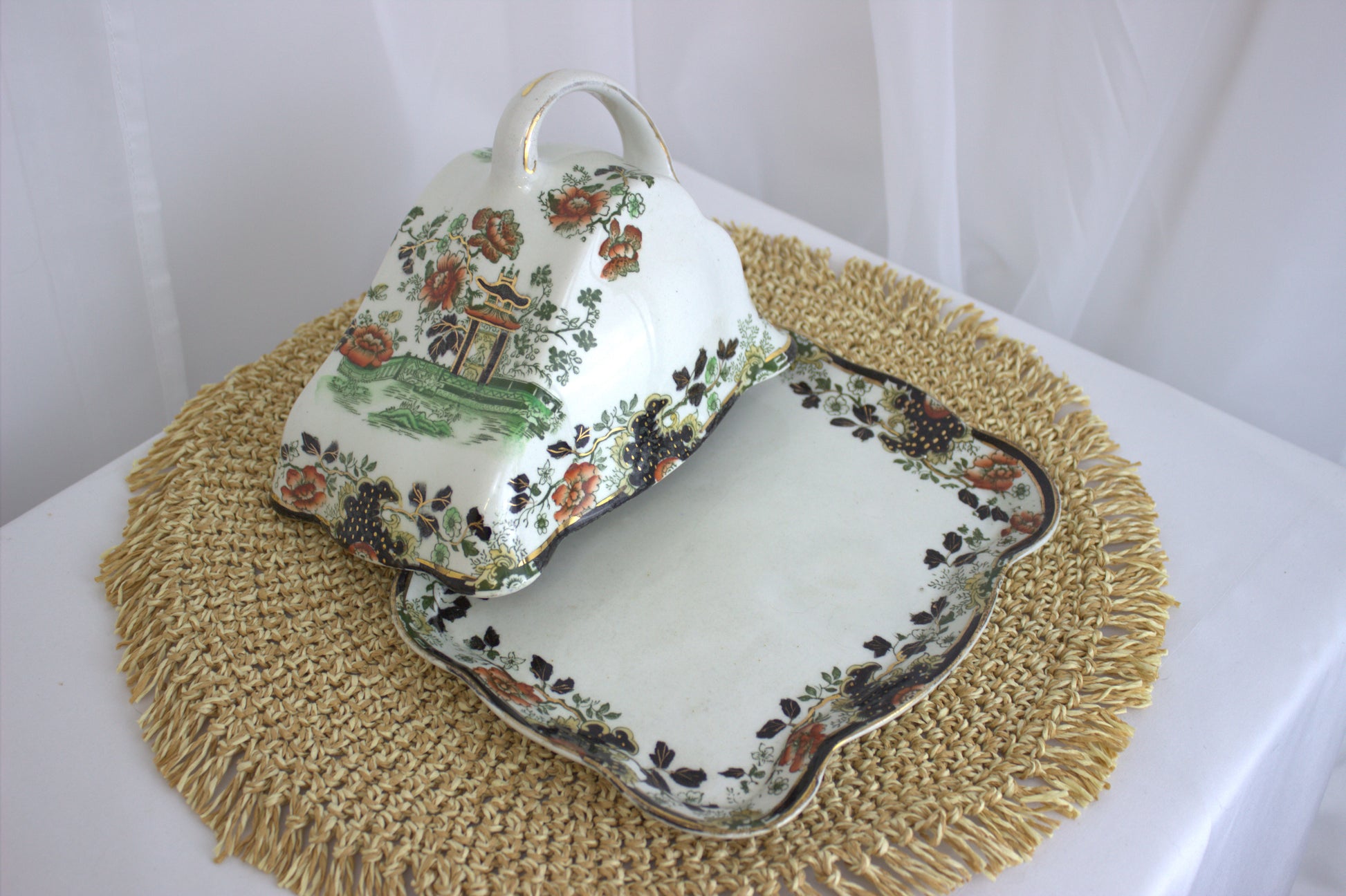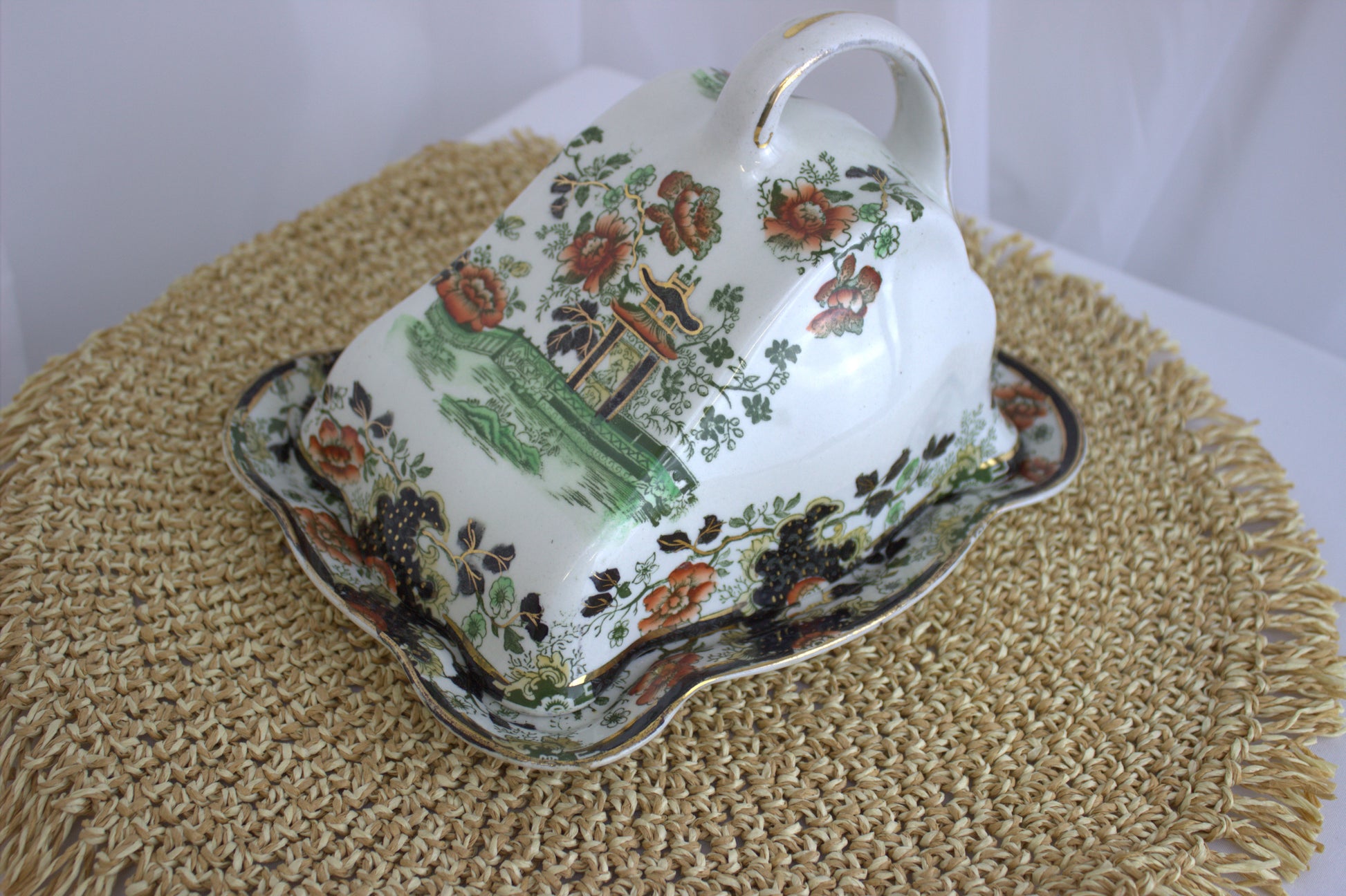 Elevate your table with this Antique Asian Oriental Cheese Keeper Dish!