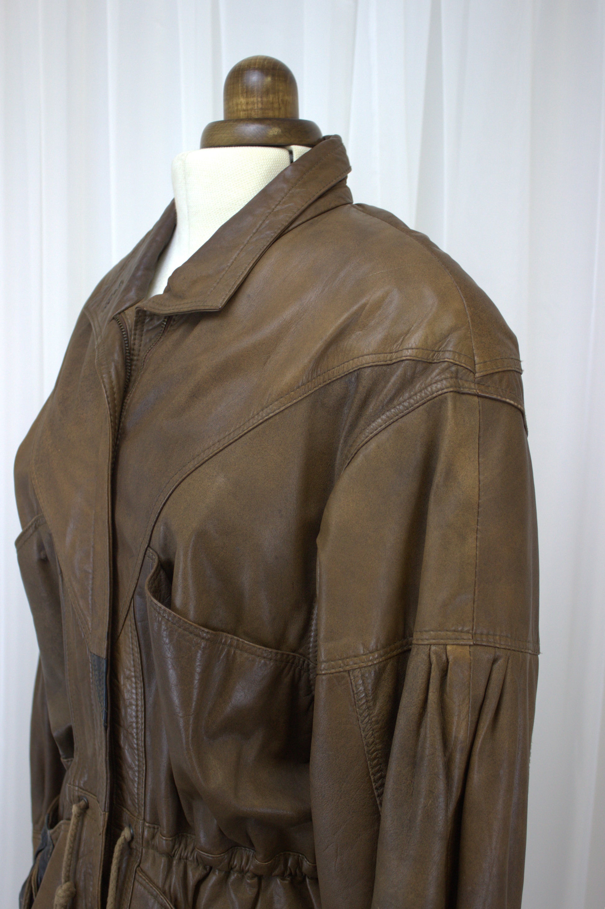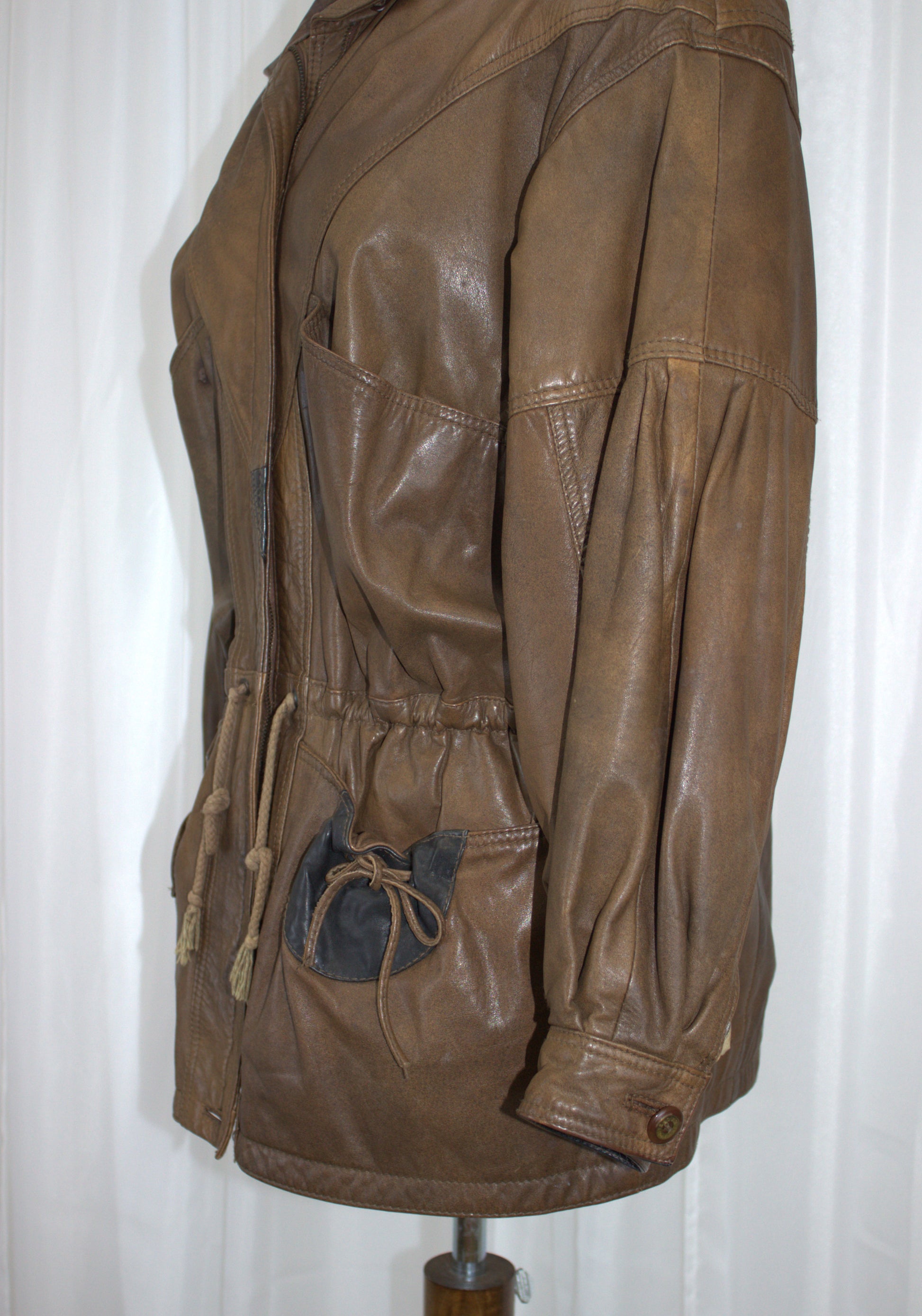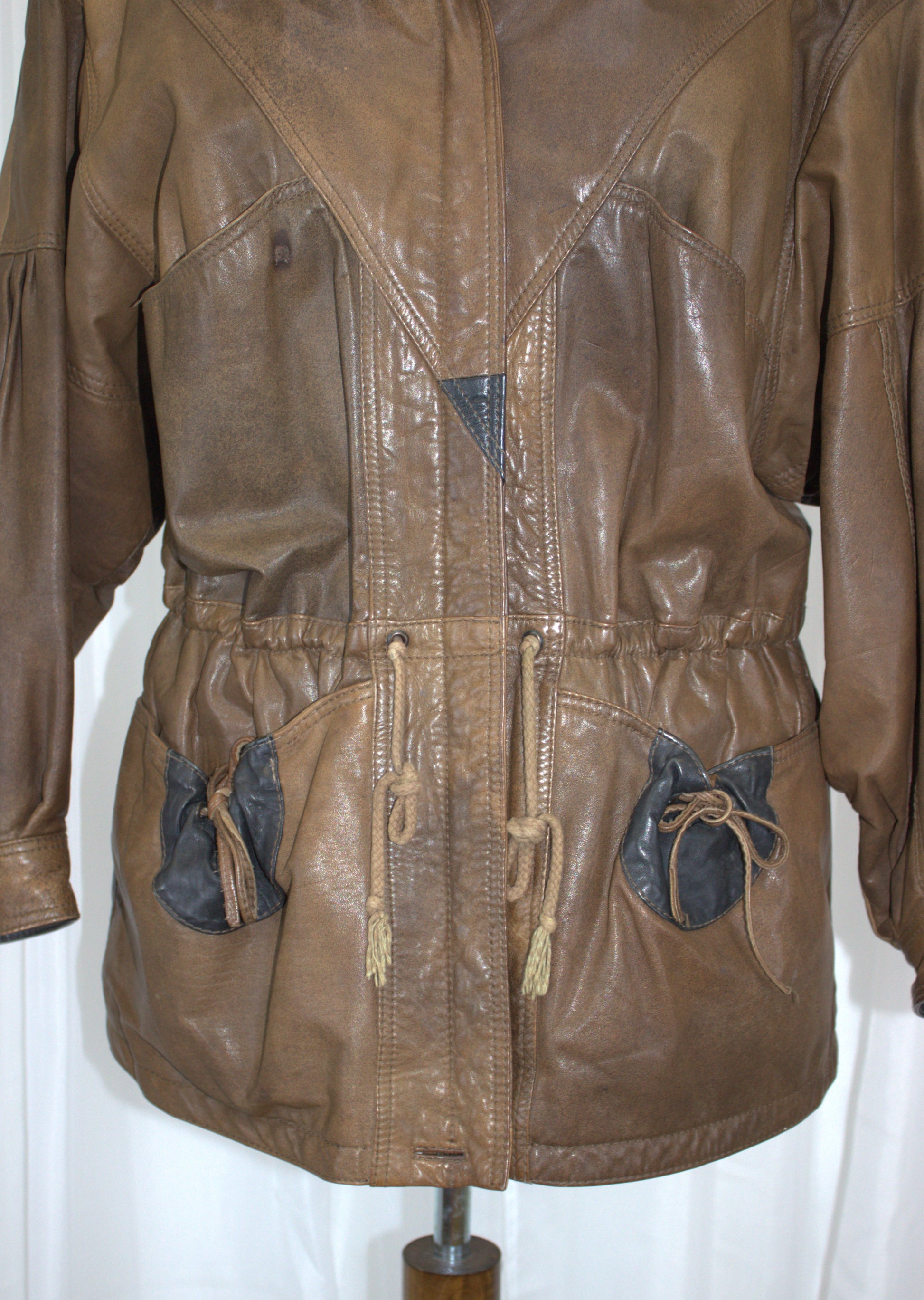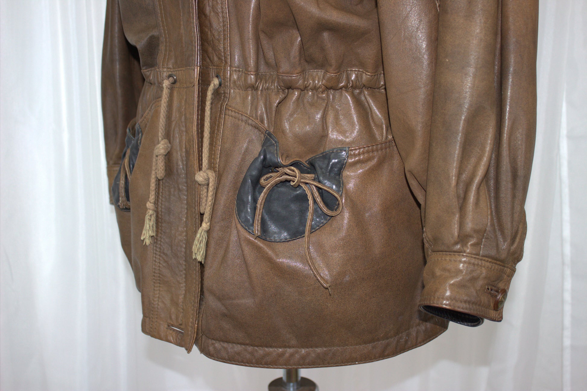 This stunning Julian Vard leather jacket is a rare and unique piece, featuring a beautiful 3-tone leather design that adds a stylish, vintage touch. Made from genuine leather and fully lined with 100% rayon, this jacket is not only fashionable but also practical with its functional pockets and adjustable drawstring waist for a tailored fit.