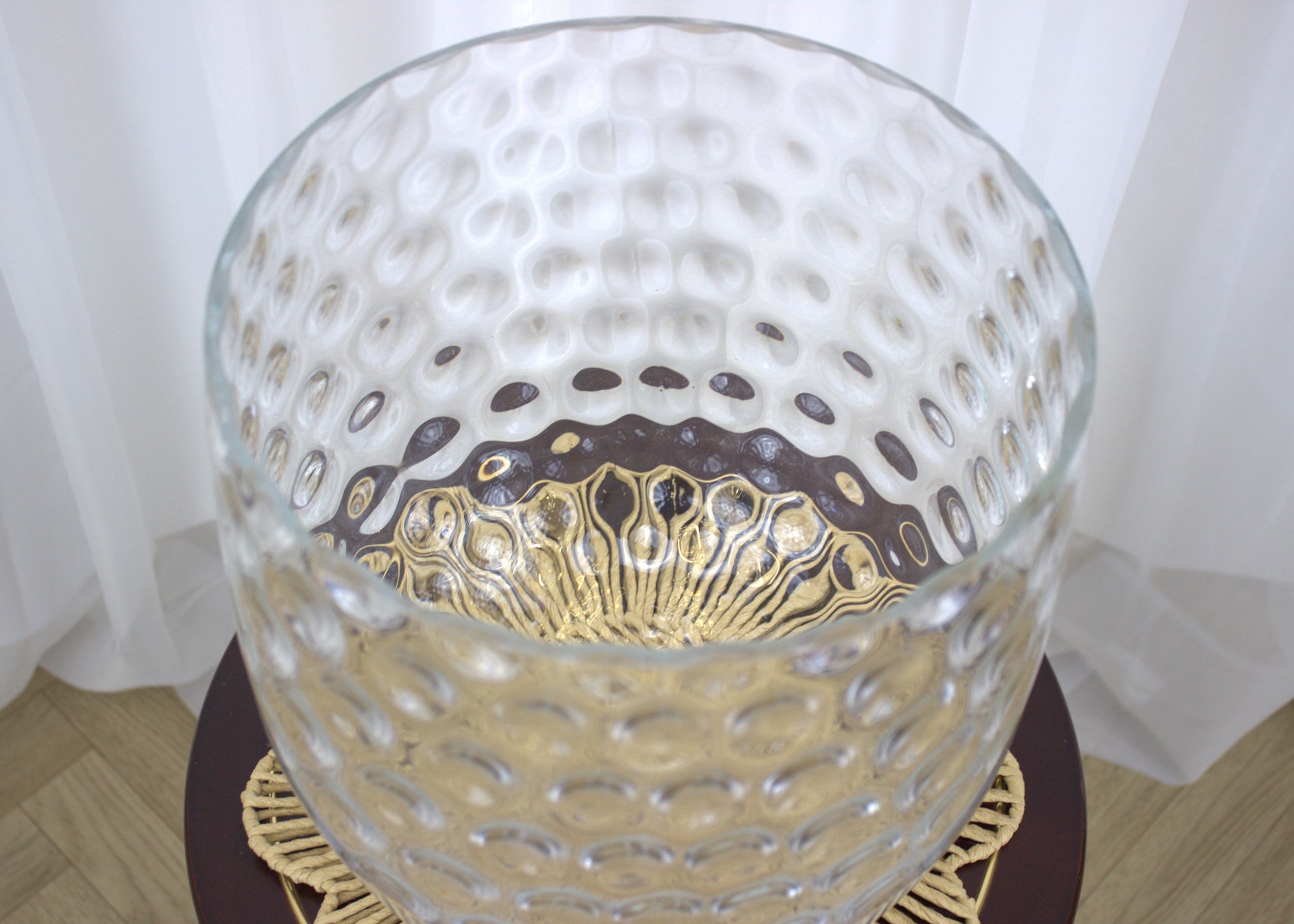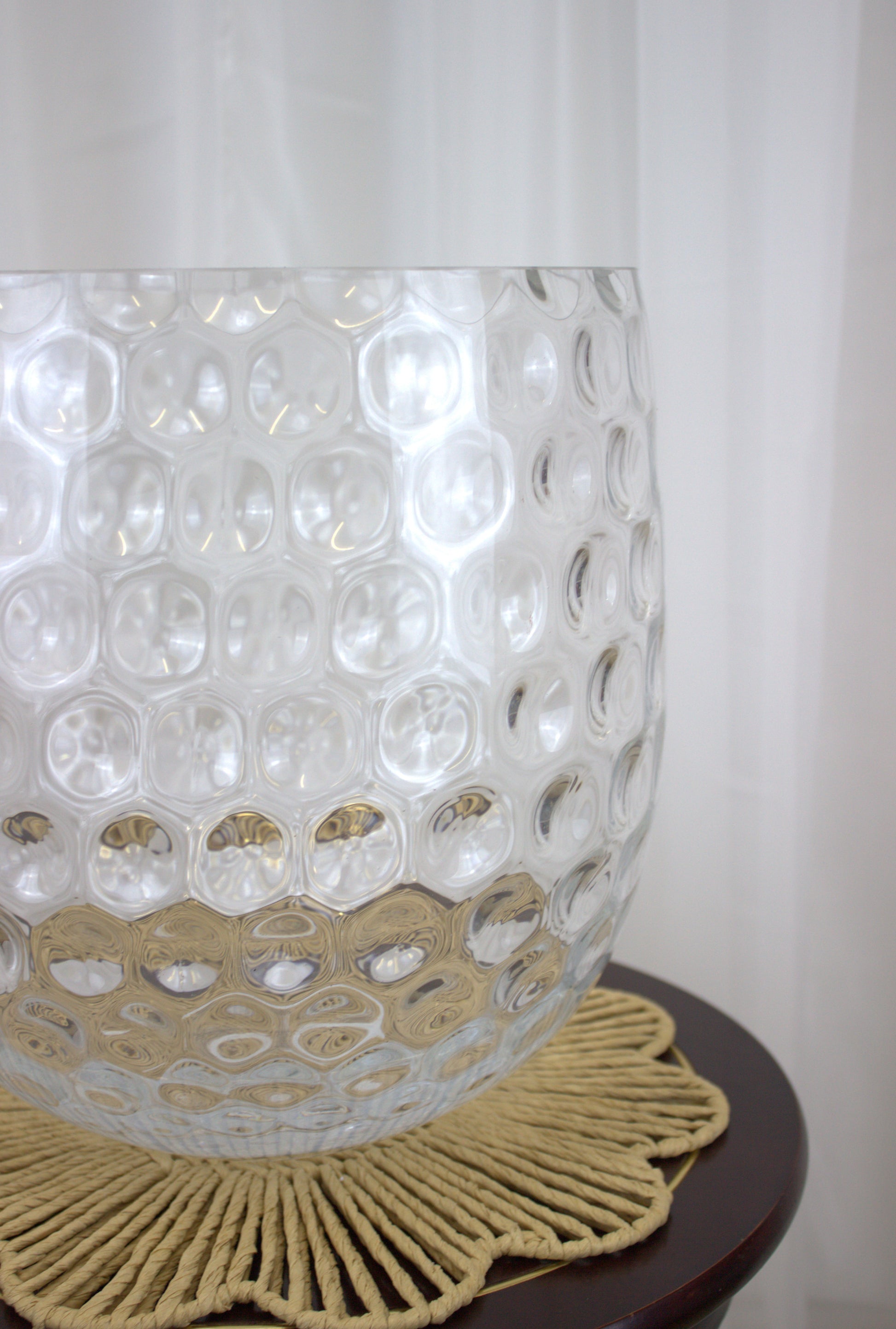This gorgeous large glass vase is an absolute showstopper! With its beautiful honeycomb-like textured pattern, it’s a versatile piece that works perfectly indoors or outdoors. Whether you’re using it as a flower vase, a stylish planter, or even a candle holder, it’s sure to bring a touch of elegance to any space.