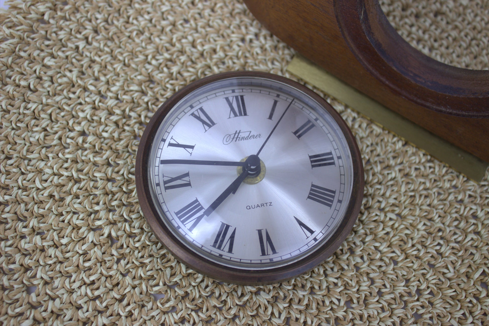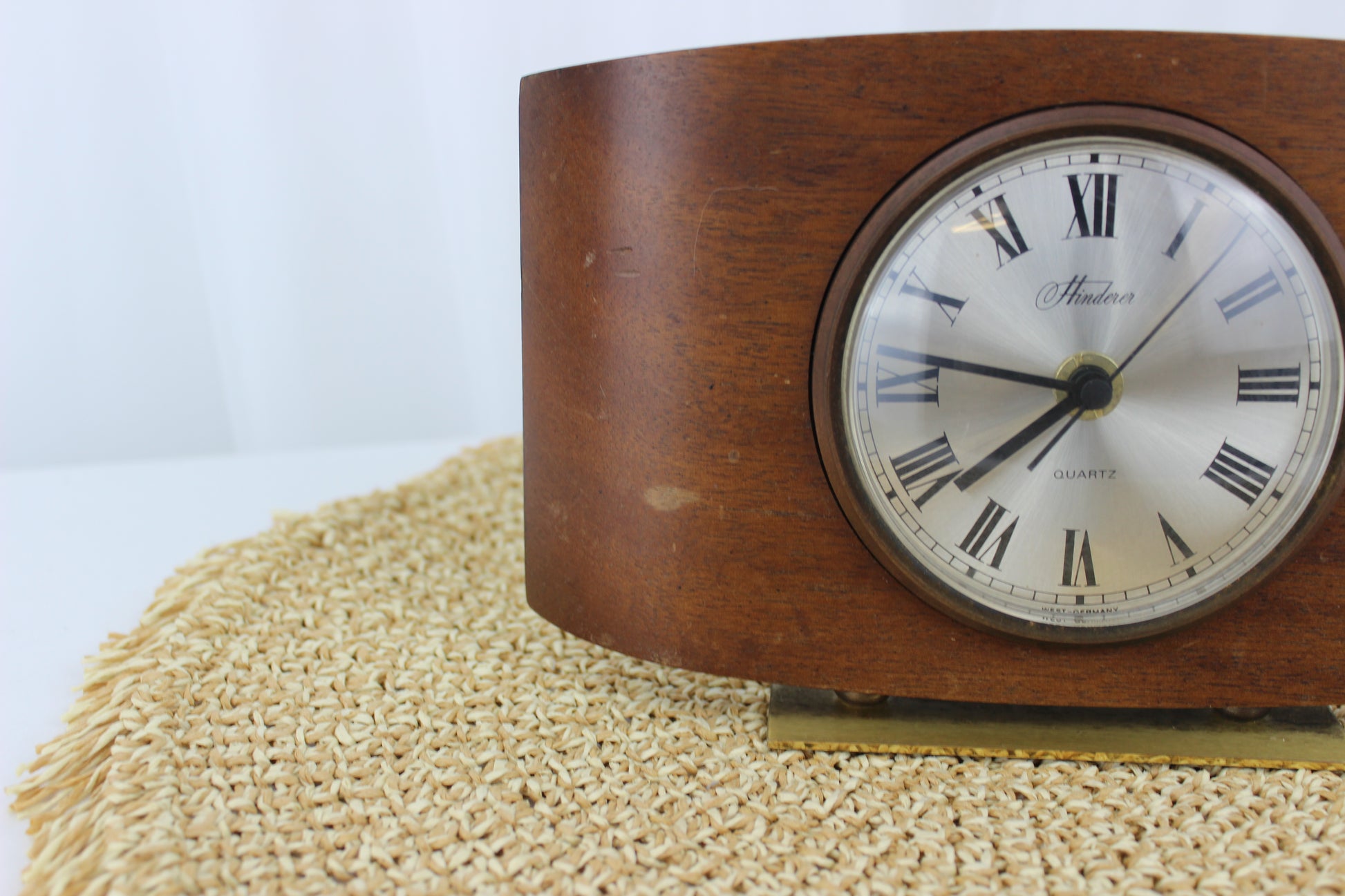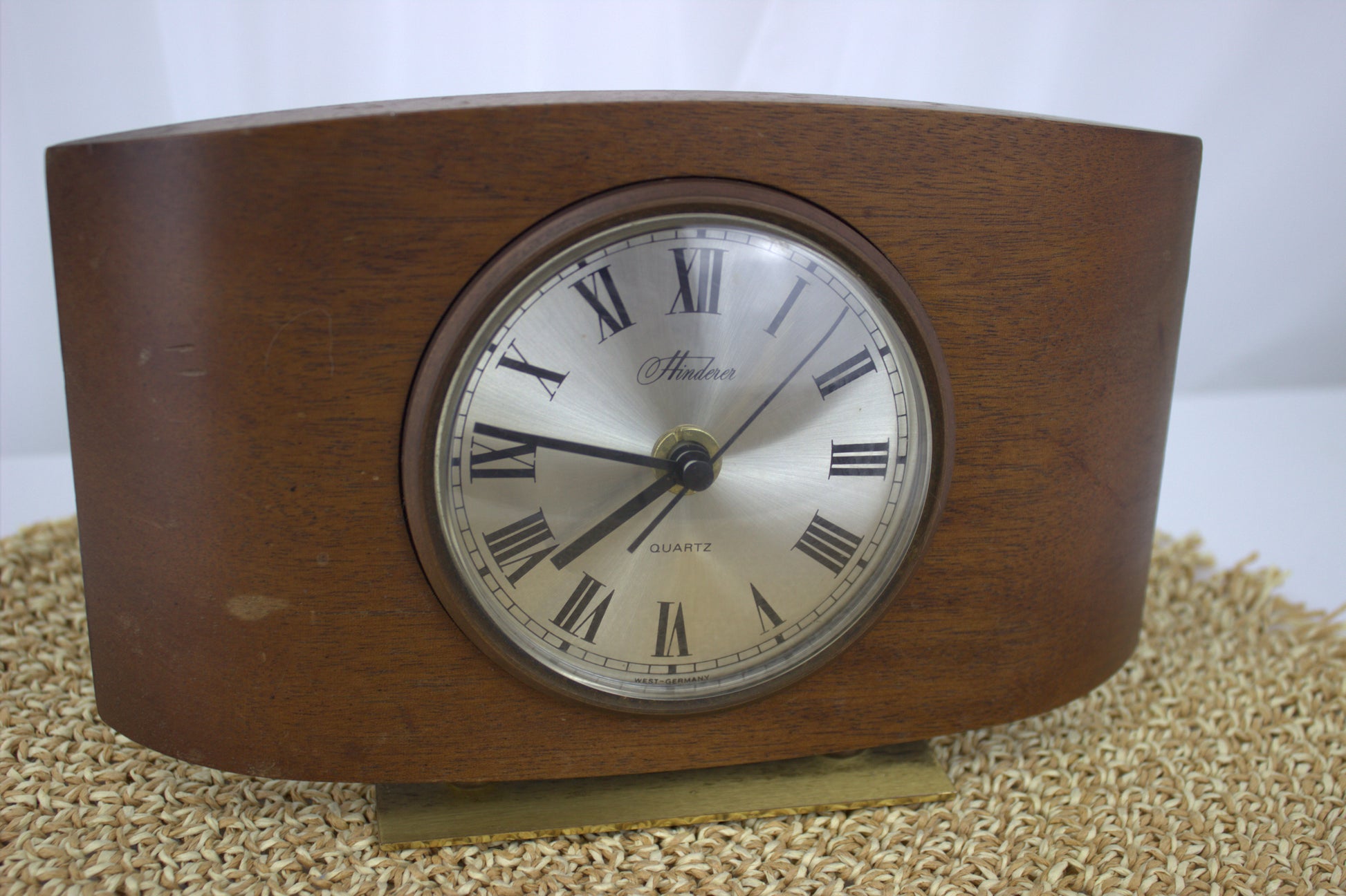 Vintage 1970's Hinderer Quartz Mantle Clock with Brass Stand